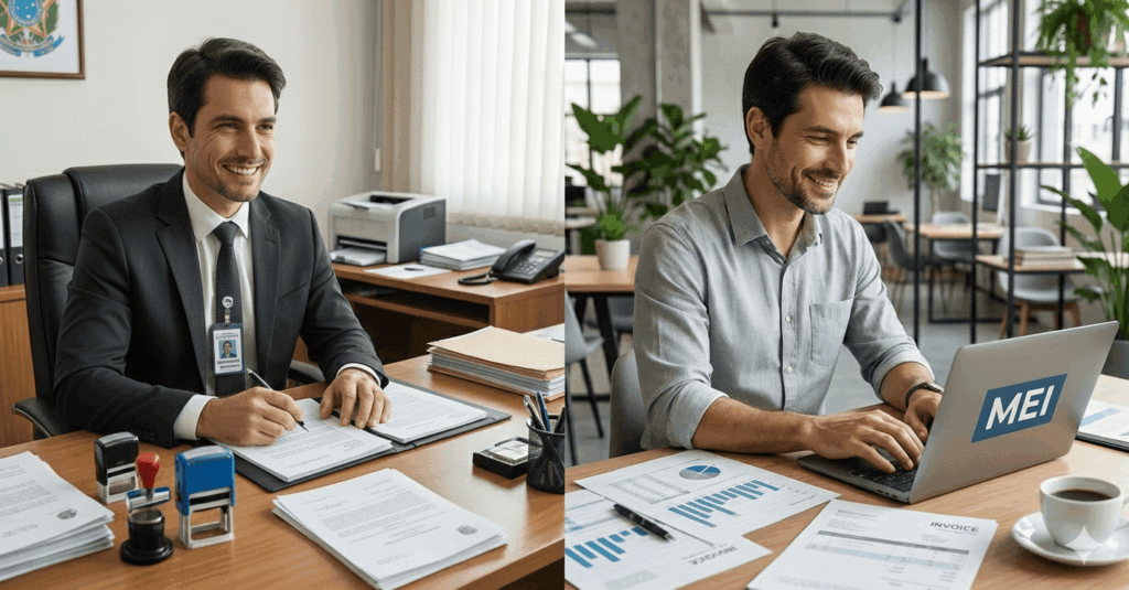 Os Limites do MEI Funcionam Como um “Freio de Segurança” As regras do MEI impõem limites para evitar uma dedicação excessiva ao negócio. O faturamento não pode ultrapassar R$ 81.000,00 por ano e apenas um funcionário pode ser contratado. Se o negócio crescer, o servidor perderá a condição de MEI e ficará sujeito à proibição da Lei nº 8.112/90.
